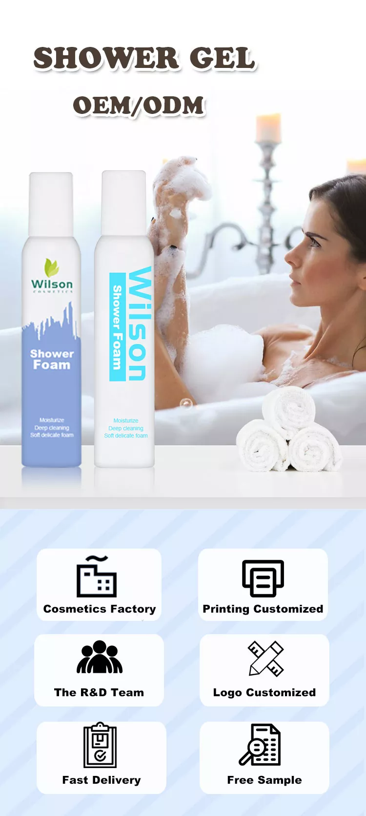 ໂຟມອາບນ້ໍາ Wilson ທົນທານຕໍ່ຄວາມຊຸ່ມຊື່ນຍາວນານໂດຍສະເພາະແມ່ນເຫມາະສົມສໍາລັບຜູ້ທີ່ໃຊ້ເວລາຫມົດມື້ຢູ່ໃນຫ້ອງເຄື່ອງປັບອາກາດຫຼືຜິວຫນັງມັກຈະແຫ້ງແລະເປັນເກັດໆໃນຊ່ວງລຶະເບິ່ງໃບໄມ້ລ່ວງແລະລະດູຫນາວ. ສໍາລັບຕົວຢ່າງ, ພະນັກງານຫ້ອງການຈໍານວນຫຼາຍອາບນ້ໍາຫຼັງຈາກກັບບ້ານໃນຕອນກາງຄືນແລະພົບວ່າຜິວຫນັງຂອງເຂົາເຈົ້າຍັງອ່ອນລົງຈົນກ່ວາໃນຕອນເຊົ້າມື້ຕໍ່ມາ, ບໍ່ມີອາການຄັນແຫ້ງ. ນີ້ແມ່ນຍ້ອນສູດຂອງອາຊິດ hyaluronic, panthenol, ແລະສານສະກັດຈາກຄວາມຊຸ່ມຊື່ນຈາກພືດທໍາມະຊາດ. ພວກມັນສ້າງອຸປະສັກຄວາມຊຸ່ມຊື່ນທີ່ເບິ່ງບໍ່ເຫັນສໍາລັບຜິວຫນັງ, ຮັບປະກັນການເຮັດຄວາມສະອາດຢ່າງລະອຽດໃນຂະນະທີ່ຊ່ວຍສ້ອມແປງອຸປະສັກຜິວຫນັງທີ່ອ່ອນແອແລະຫຼຸດຜ່ອນການສູນເສຍຄວາມຊຸ່ມຊື່ນ.